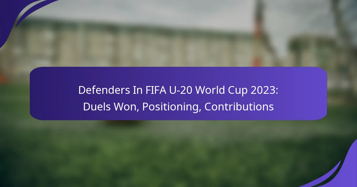 Defenders in the FIFA U-20 World Cup 2023 showcased their skills through various key statistics, including duels won, tackles made, interceptions, clearances, and pass completion rates. These metrics are essential for evaluating their contributions to team performance and defensive solidity during the tournament.